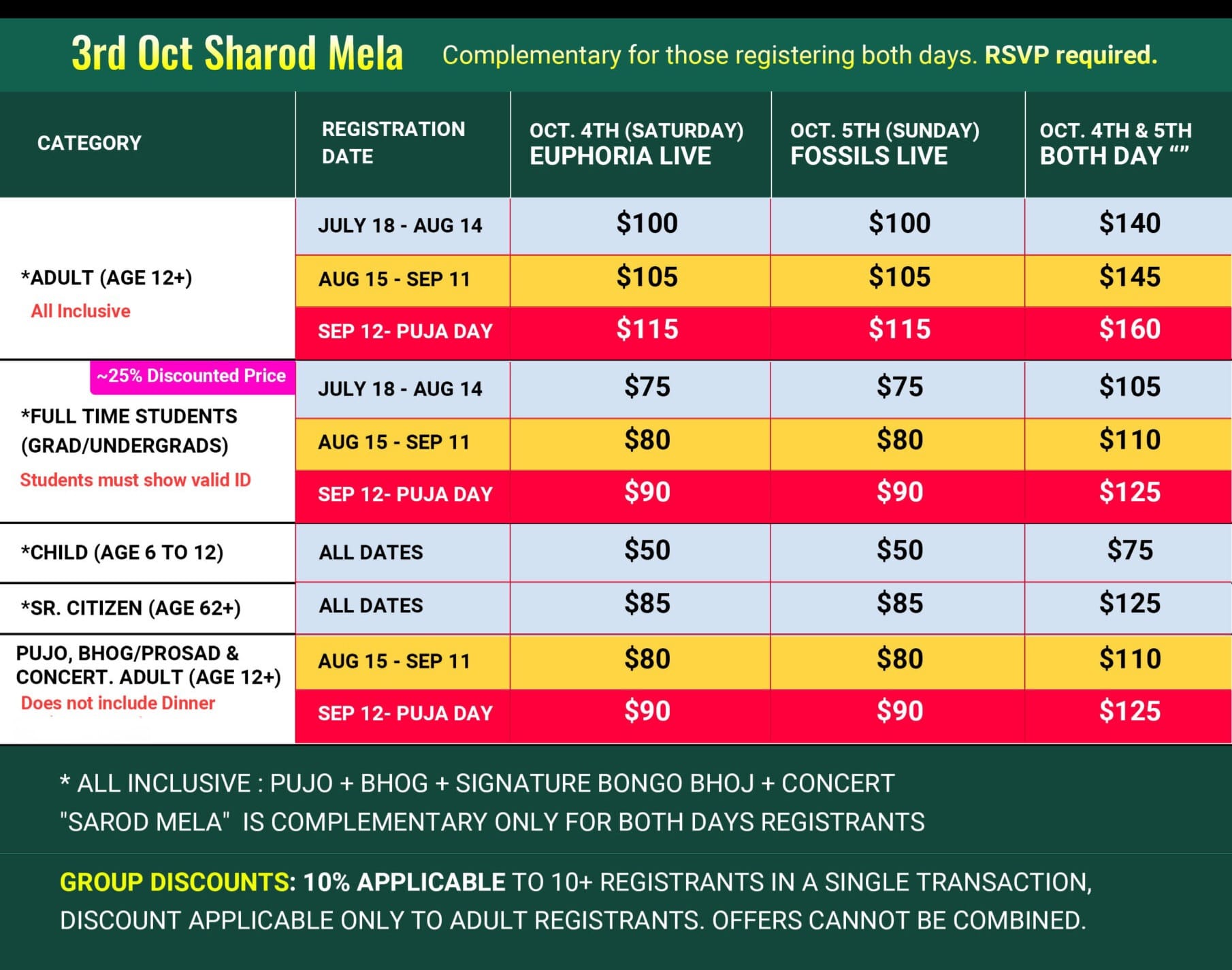 - Pujo Start: 11:30 Noon